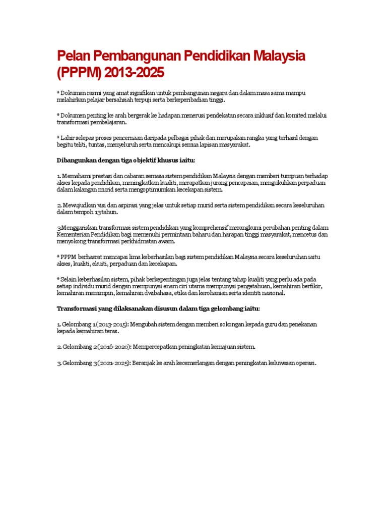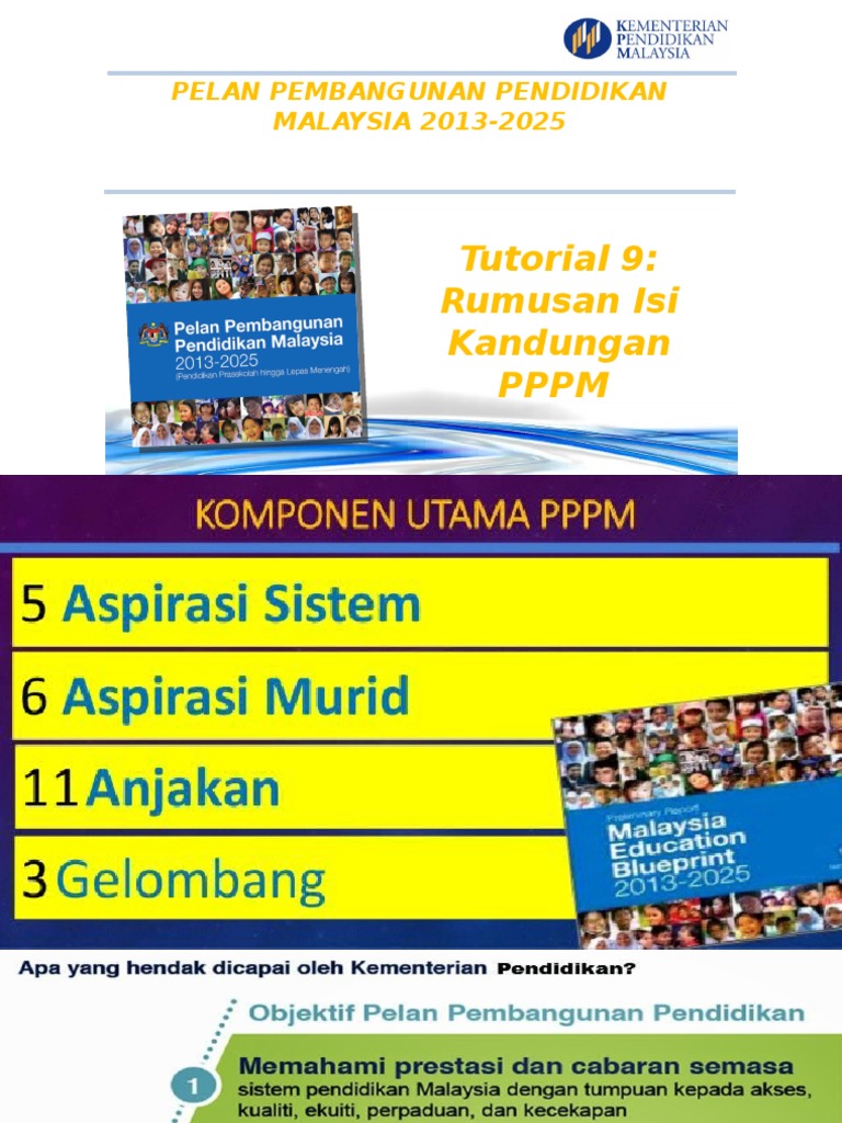 Info 5 Minit Pppm Bhg 4 Pptx Powerpoint from reader024.cupdf.com Savesave objektif pelan pembangunan pendidikan malaysia 201. Pada oktober 2011, kementerian pendidikan malaysia melancarkan kajian semula sistem pendidikan negara secara menyeluruh dalam usaha membangunkan pelan pembangunan pendidikan malaysia yang baharu. Umum sedia maklum, pelan pembangunan pendidikan malaysia merupakan hasil penglibatan masyarakat dan penyelidikan meluas yang dijalankan oleh kementerian pendidikan (kementerian). pppm dibangunkan bagi menilai prestasi semasa sistem pendidikan malaysia dengan mengambil kira secara objektif pencapaian lampau dibandingkan dengan tanda aras antarabangsa. Aplikasi geofizik untuk pembangunan infrastruktur lestari. Ianya telah dilancarkan pada 6 september 2013 oleh yab timbalan perdana menteri malaysia. Pembangunan pada dasarnya tidak hanya persoalan fisik. Objektif ini dinyatakan secara am tetapi dalam melaksanakannya, kementerian pelajaran dengan berpandukan kepada penyata.pendahuluan pendidikan merupakan hal penting bagi agenda pembangunan pemerintah indonesia.