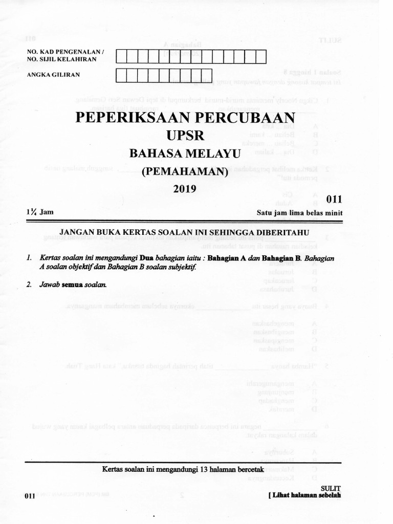 Giliran daftar 1 na0241006 damia qistina binti abdullah p 6 4a2b 2 na0241039 nur amni zafirah binti md mahadir p 6 4a2b 3 na0241063 siti nur insyirah binti syahrulnizam p 6 5a1b. Upsr, spm, spm(u) dan stam lembaga peperiksaan kpm reviewed by ciklaili on friday, february 28. Bank kertas soalan peperiksaan percubaan upsr 2019, upsr 2018, upsr 2017 + skema jawapan (semua subjek). Jadual waktu & tarikh upsr 2019. Klik sahaja button share tersebut.